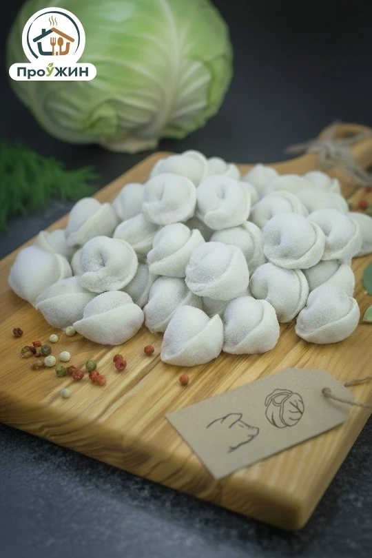 Состав: тесто ( мука пшеничная в/с, вода питьевая, яйцо куриное, соль, масло растительное. фарш (свинина, лук репчатый, капуста белокочанная, соль, перец черный, сахар)
