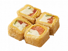 Тортилья, лосось копчёный, омлет, сыр сливочный, помидор, салат айсберг, лук зелёный, кляр, панко
