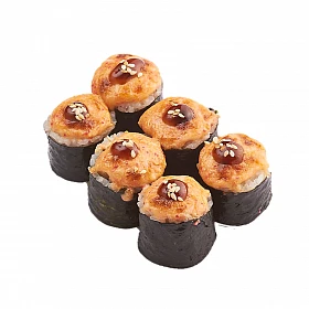 Рис, нори, курица, шапка спайси, соус унаги, кунжут