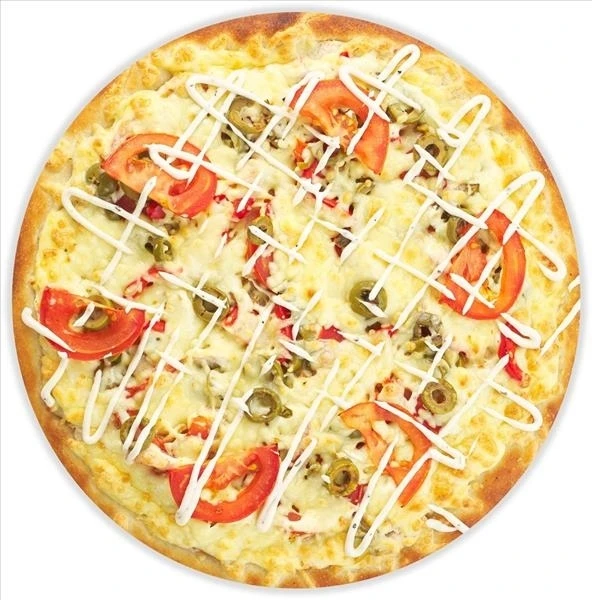 Состав: Филе куриное запечённое, томаты, перец сладкий, сыр моцарелла, оливки, майонез, соус ранч