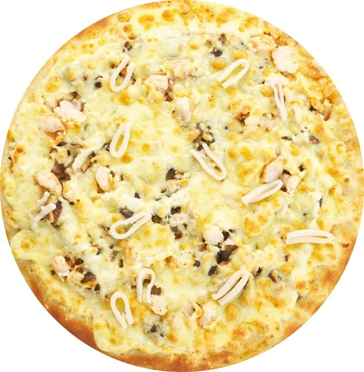 Состав: Соус Том Ям, Кальмар отварной, Фарш грибной, Креветка отварная, сыр моцарелла, майонез