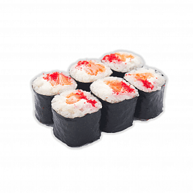 Состав: рис, нори, сыр сливочный, лосось с/с, икра масаго