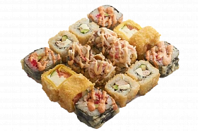 1. Темпура Кани 4шт 2. Горячая Тортилья с копченым лососем 4шт3. Темпура с угрем 4шт4. Техас 4шт ИМБИРЬ, ВАСАБИ, СОЕВЫЙ СОУС ЗАКАЗЫВАЮТСЯ ОТДЕЛЬНО!
